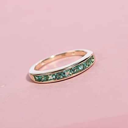 9K Yellow Gold AA Boyaca Colombian Emerald Half Eternity Band Ring 0.54 Ct.