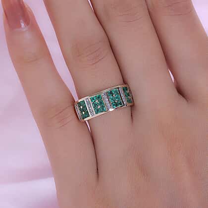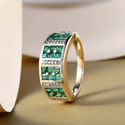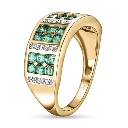 9K Yellow Gold AA Colombian Emerald and Diamond Ring 1.21 Ct.