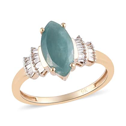1.7 Ct. Grandidierite and White Diamond Ring in 9K Yellow Gold