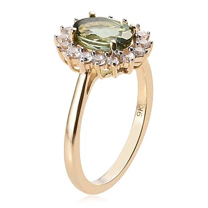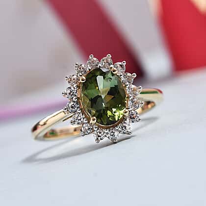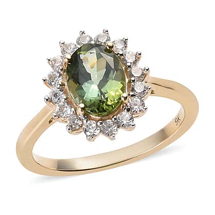 1.33 Ct Green Tourmaline and Natural Cambodian Zircon Ring in 9K Yellow Gold