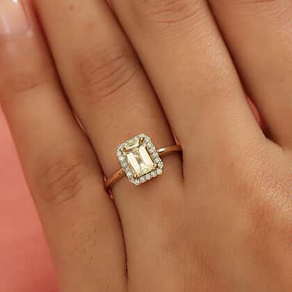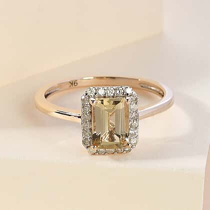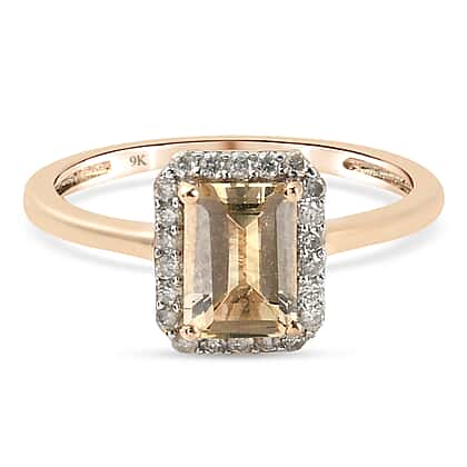 9K Yellow Gold AA Imperial Topaz and Diamond Halo Ring 1.31 Ct.