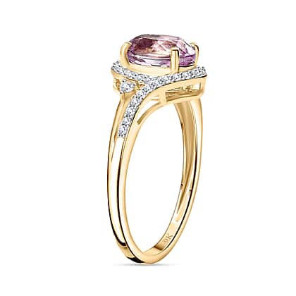 9K Yellow Gold AA Kunzite, Moissanite Halo Ring