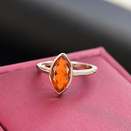 9K Yellow Gold AA Mexican Cherry Fire Opal Solitaire Ring 1.14 Ct