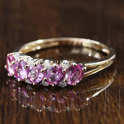 1 Carat AA Madagascar Pink Sapphire and Diamond I2 GH Five Stone Ring in 9K Yellow Gold