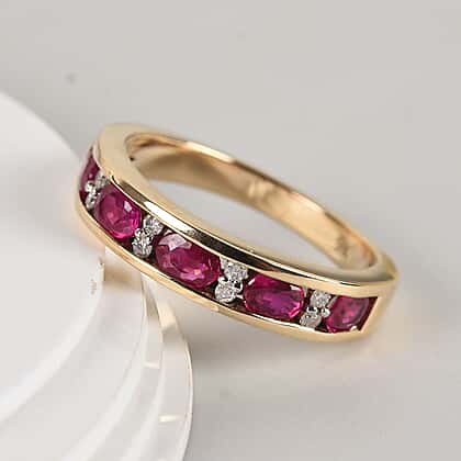 1.10 Ct. AA Ruby and Diamond Half Eternity Band Ring in 9K Yellow Gold (I3-G-H)
