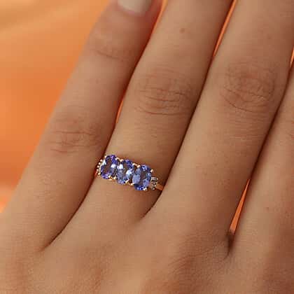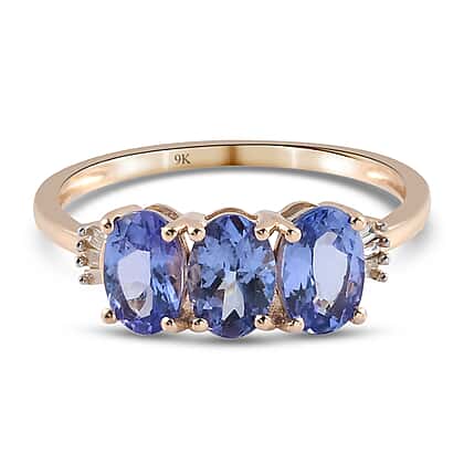 - An epic look is offered to the ring with the stunning trilogy of oval-cut tanzanite and white diamonds gracing their flanks
