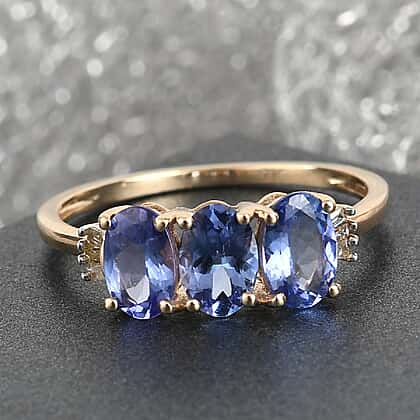 9K Yellow Gold 1.28 Ct. Tanzanite Ring with White Diamond