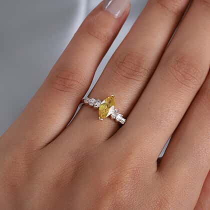 - CLASSY DESIGN: The ring features a mix of yellow sapphire and diamonds arranged horizontally over its length
