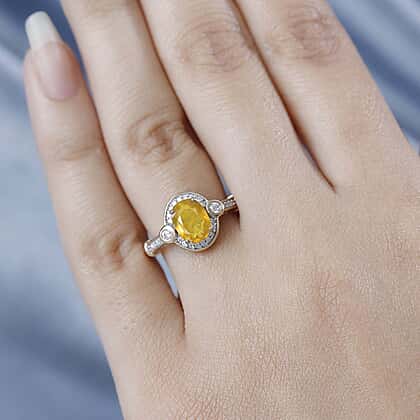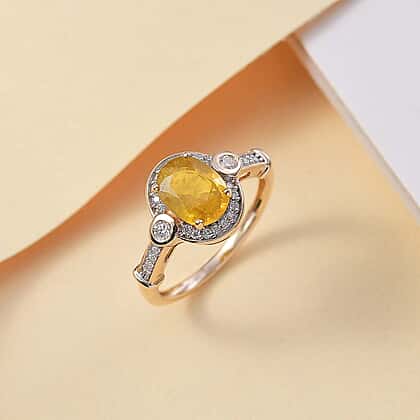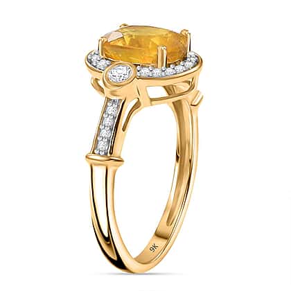 9K Yellow Gold AA Yellow Sapphire, Moissanite Halo Ring 1.91 Ct