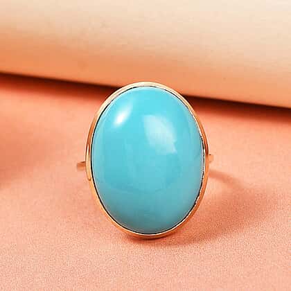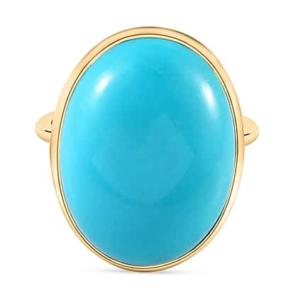 Big Size 14 Ct AA Sleeping Beauty Turquoise Solitaire Ring in 9K Yellow Gold