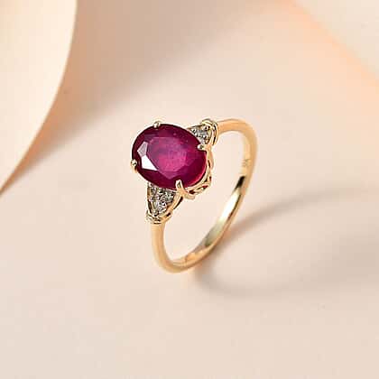 9K Yellow Gold AA African Ruby and Diamond I3 GH Classic Solitaire Ring 2.40 Ct