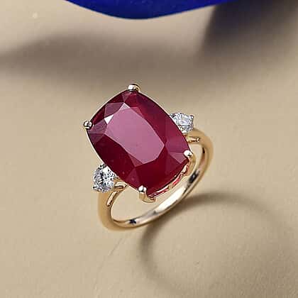 9K Yellow Gold AAA African Ruby & Lab Grown Diamond (SI-GH) Ring 17.18 Ct.
