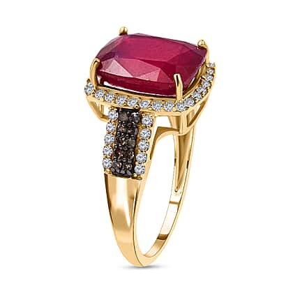 9K Yellow Gold AAA African Ruby, Natural Zircon and Champagne Diamond Ring 6.71 Ct.