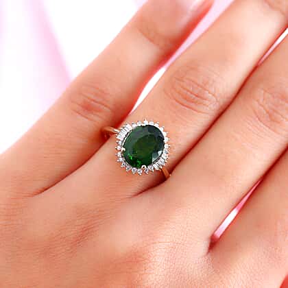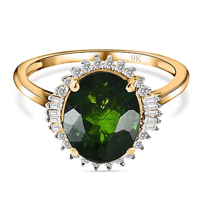 3.86 Ct. 9K Yellow Gold Halo Chrome Diopside and Diamond Ring