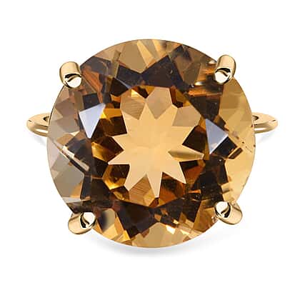 9K Yellow Gold AAA Citrine Solitaire Ring 10.00 Ct.