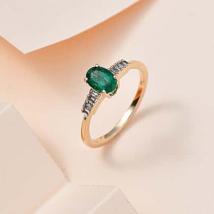 9K Yellow Gold AAA Emerald & Diamond Ring 0.50 Ct.