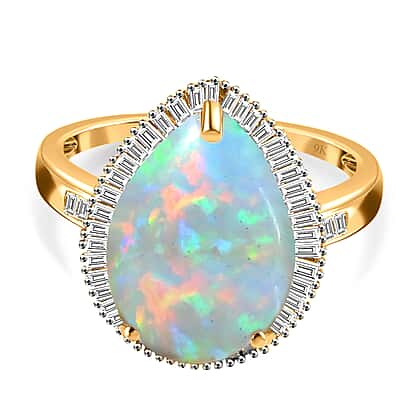 9K Yellow Gold AAA Ethiopian Welo Opal and Diamond Ring 3.77 Ct