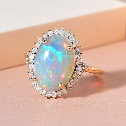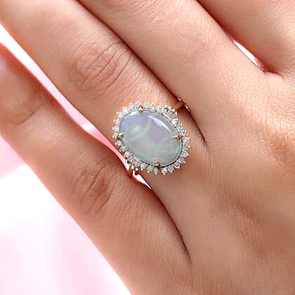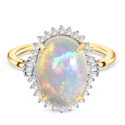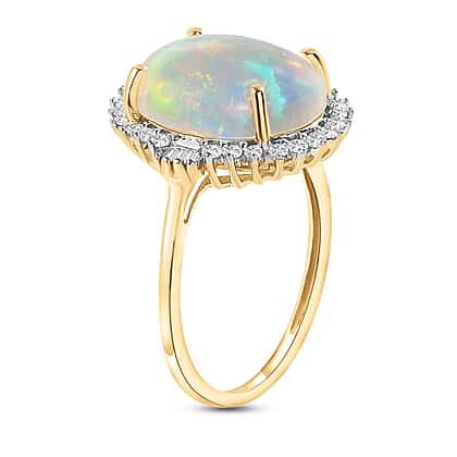 9K Yellow Gold Halo Ethiopian Welo Opal Ring with Diamond 4.26 Ct.