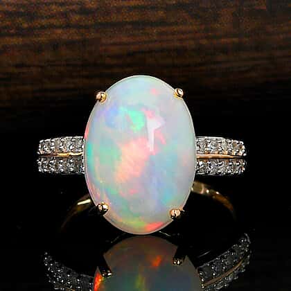 9K Yellow Gold AAA Ethiopian Welo Opal and Diamond Ring 4.16 Ct.