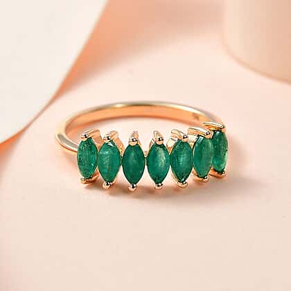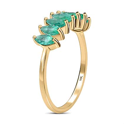 9K Yellow Gold AAA Gemfields Emerald 7 Stone Ring