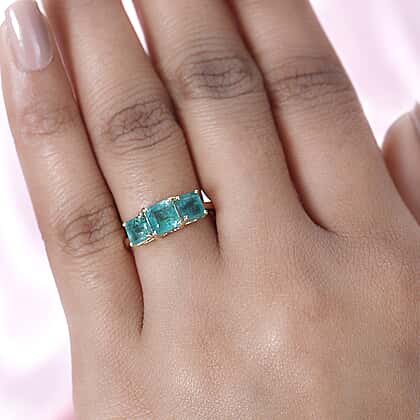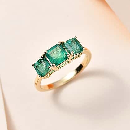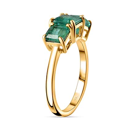 9K Yellow Gold AAA Gemfields Zambian Emerald 3 Stone Ring 2.23 Ct.