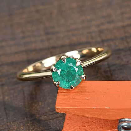 0.75 ct. AAA Zambian Emerald Solitaire Ring in 9K Yellow Gold