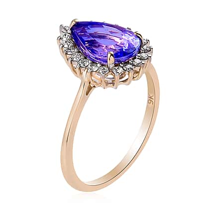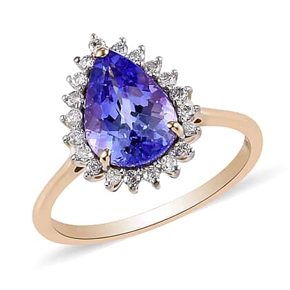 9K Yellow Gold AAA Pear Cut Tanzanite and Diamond Ring 2.00 Ct.