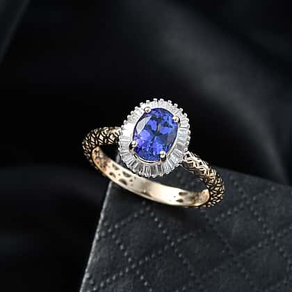 9K Yellow Gold AAA Tanzanite, White Diamond Main Stone With Surrounding Stone Ring, Gold Wt.1.25 Gms 1.269 Ct.