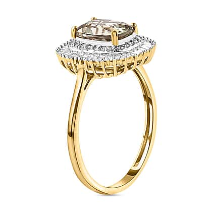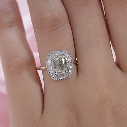 9K Yellow Gold AAA Turkizite and Diamond Halo Ring 2.01 Ct.