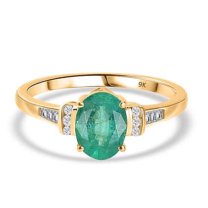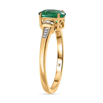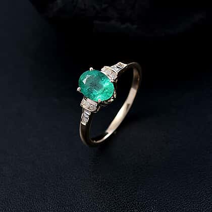 9K Yellow Gold AAA Zambian Emerald & White Diamond Ring 1.21 Ct.