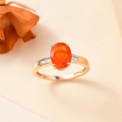 9K Yellow Gold AAAA Fire Opal, White Diamond Solitaire Diamond Ring