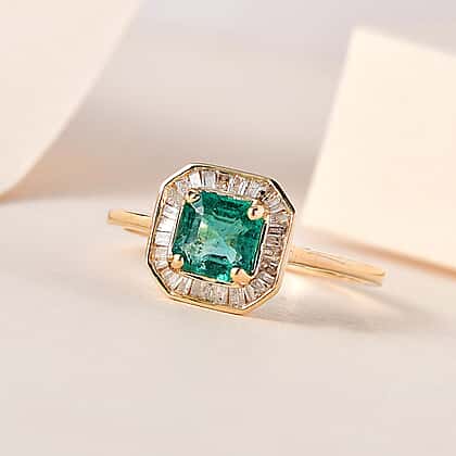 9K Yellow Gold AAAA Gemfields Asscher Cut Emerald & Diamond Halo Ring 1.34 Ct