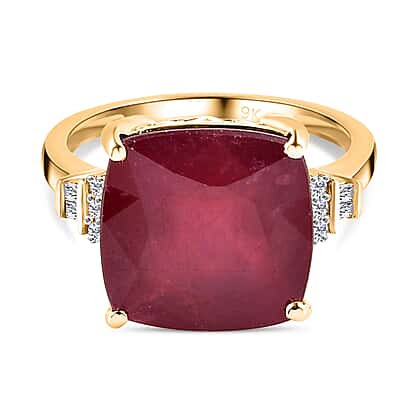 9K Yellow Gold African Ruby and Diamond Ring 11.67 Ct.