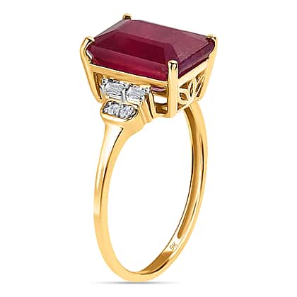 4.96 Ct African Ruby and Diamond Solitaire Ring in 9K Yellow Gold