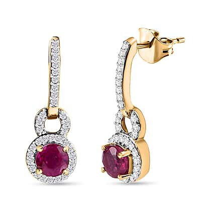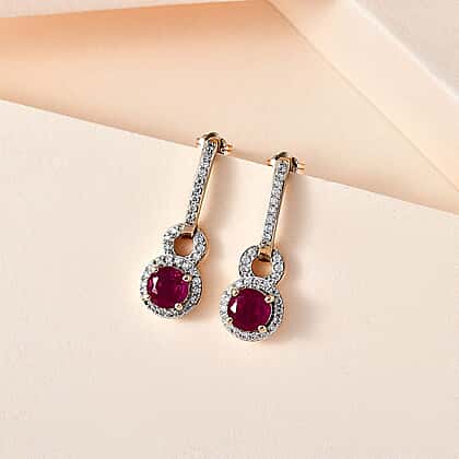 9K Yellow Gold African Ruby & Moissanite Earrings 1.82 Ct.