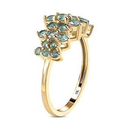 This cathedral shank of this alexandrite ring has layers in gallery rail, covering up the shoulders with the cluster setting of the gemstone. The round-faceted cut alexandrite exudes a magical play of green hue during the day and red at night. The cluster setting of the gem gives a unique charm to this ring, crafted in solid sterling silver with a yellow gold overlay. Gift this beautiful AA-graded alexandrite ring on special occasions like anniversaries or birthdays.