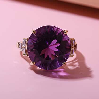 Exclusive Edition 10.62 Ct Amethyst and Moissanite Solitaire Ring in 9K Yellow Gold