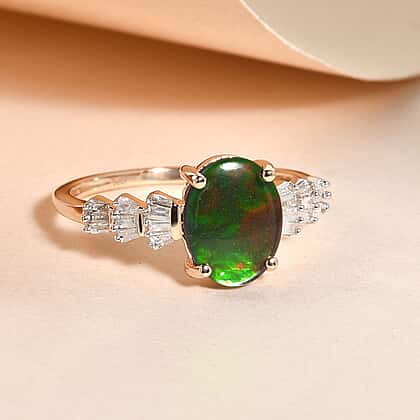 9K Yellow Gold Ammolite and Diamond Ring 1.70 Ct.