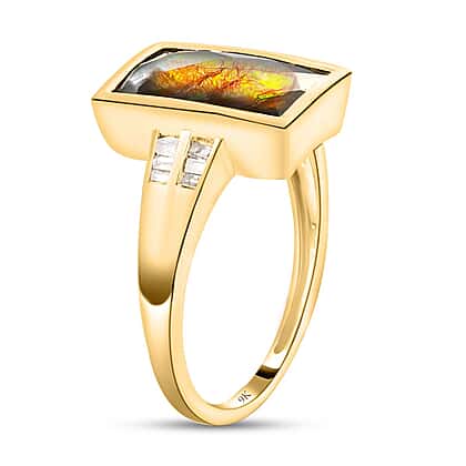 9K Yellow Gold Ammolite and Diamond Ring 2.92 Ct.