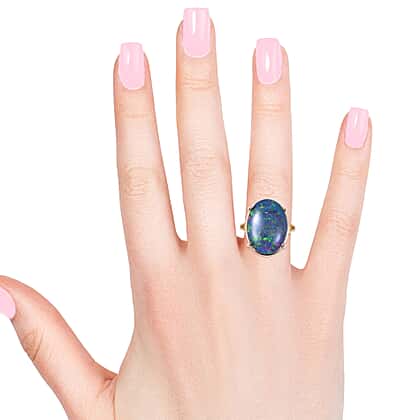 10.25 Ct Australian Boulder Opal Solitaire Ring in 9K Gold 4.46 Grams