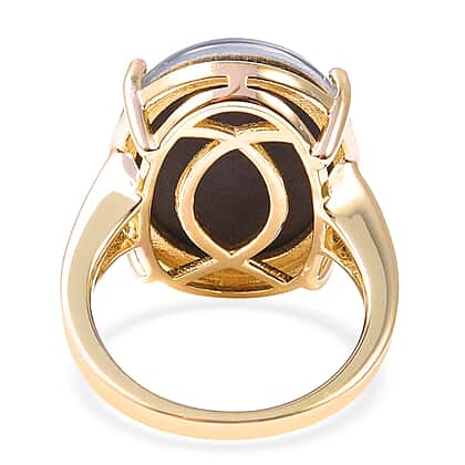 9K Yellow Gold Australian Boulder Opal (Ovl 20x15 mm) Solitaire Ring Gold wt 4.40 Gms.