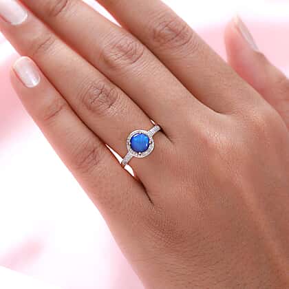 - Triplet Australian Lightning Ridge Blue Opal Round 7mm Cabochon Cut Qty: 1 Weight: 0.775ct.