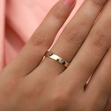 - 9K Yellow Gold has a classic glossy shimmer that makes this band ring rich and classy