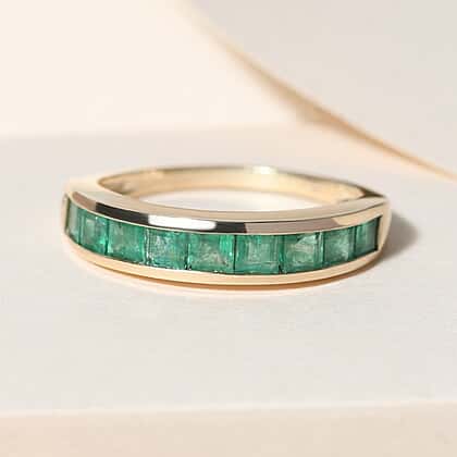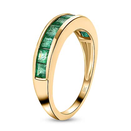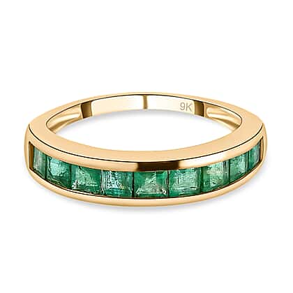 9K Yellow Gold Half Eternity Boyaca Colombian Emerald Ring 1.27 Ct.