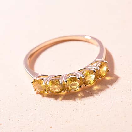 9K Yellow Gold Chantaburi Yellow Sapphire 5 Stone Ring 1.74 Ct.