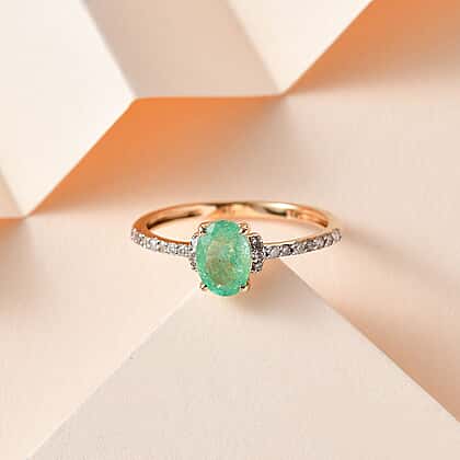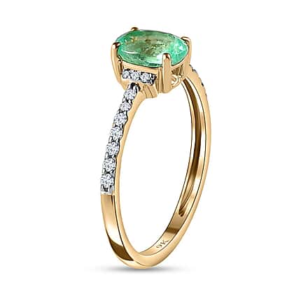 9K Yellow Gold Colombian Emerald & Diamond Ring 0.89 Ct