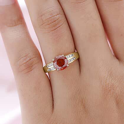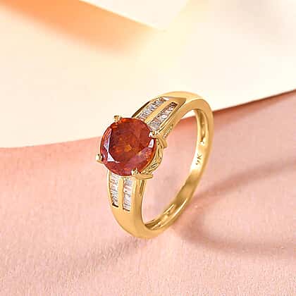 9K Yellow Gold Dark Orange Sphalerite and Diamond Ring 2.43 Ct.