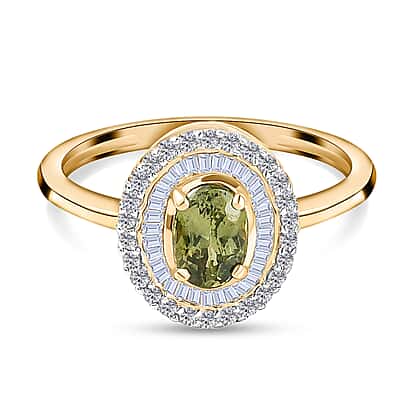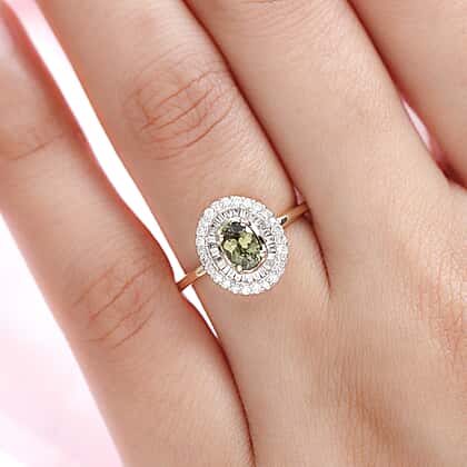9K Yellow Gold Double Halo AA Demantoid Garnet Ring with Diamond 1.11 Ct.
