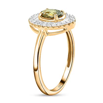 9K Yellow Gold Demantoid Garnet and Diamond Ring 1.11 Ct.