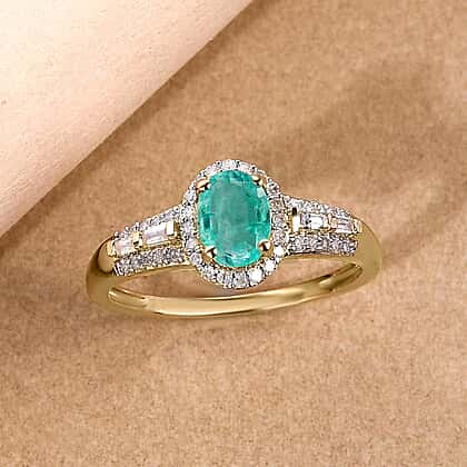 9K Yellow Gold Ethiopian Emerald and Diamond Ring 1.03 Ct.